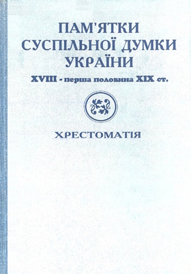 Пам’ятки суспільної думки України (XVIII – перша половина XIX ст.): Хрестоматія / Під ред. проф. А.Г.Болебруха. – Дніпропетровськ: Вид-во ДДУ, 1995. – 488 с.