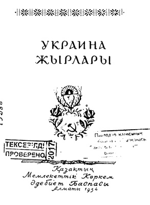 ![]() Украина жырлары (казах.)(пер. Абдікарім Ахметов, Абдільда Тажібаєв, Бакит Кайирбеков, Жаппар Омірбеков, Касим Амажолов, Куламбай Копішев, Маріям Хакімжанова, Музафар Алімбаєв, Сагингалі Сеїтов)