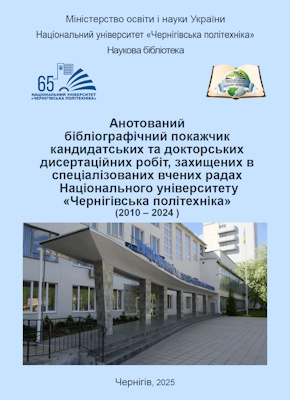 Тетяна Сіденко » Анотований бібліографічний покажчик кандидатських та докторських дисертаційних робіт, захищених в спеціалізованих вчених радах Національного університету «Чернігівська політехніка» (2010–2024 рр.)
