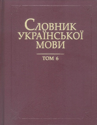 Шостий том академічного тлумачного Словника української мови у 20 томах охоплює загальновживану лексику сучасної української літературної мови, поширені терміни, діалектизми, усталені словосполучення. Джерела, використані у Словнику, відображають лексику текстів художньої літератури, починаючи з кінця XVIII століття до наших днів, Біблії, народної творчості, публіцистики, науково-популярних і наукових праць, мови засобів масової інформації, мови Інтернету та ін.