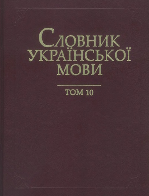 Десятий том академічного тлумачного Словника української мови у 20 томах охоплює загальновживану лексику сучасної української літературної мови, поширені терміни, діалектизми, усталені словосполучення.
