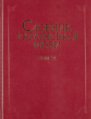 Чотирнадцятий том академічного тлумачного Словника української мови у 20 томах охоплює загальновживану лексику сучасної української літературної мови, поширені терміни, діалектизми, усталені словосполучення. Джерела, використані в Словнику, відображають лексику текстів художньої літератури, починаючи з кінця XVIII століття до наших днів, українських перекладів Біблії, народної творчості, наукових і науково-популярних праць, публіцистики, мови засобів масової інформації і т.ін.