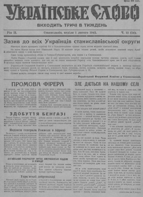 «Українське слово» [Станиславів] » 1942, ч. 13 (54)