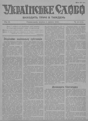 «Українське слово» [Станиславів] » 1942, ч. 16 (57)