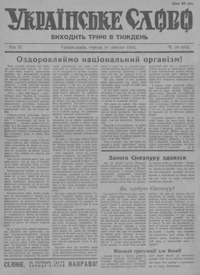 «Українське слово» [Станиславів] » 1942, ч. 20 (61)