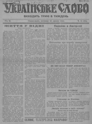 «Українське слово» [Станиславів] » 1942, ч. 21 (62)