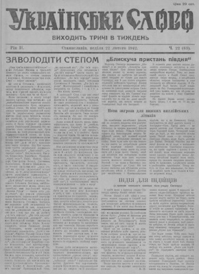 «Українське слово» [Станиславів] » 1942, ч. 22 (63)