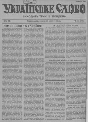 «Українське слово» [Станиславів] » 1942, ч. 23 (64)