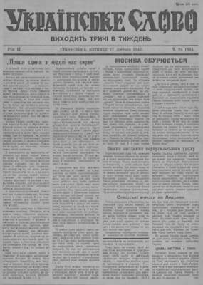 «Українське слово» [Станиславів] » 1942, ч. 24 (65)