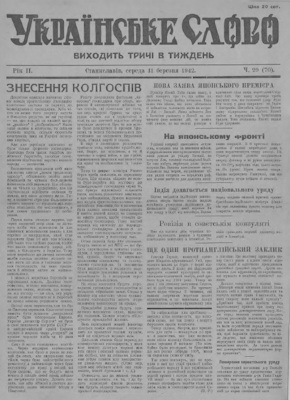 «Українське слово» [Станиславів] » 1942, ч. 29 (70)