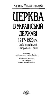 Василь Ульяновський » Церква в Українській Державі 1917–1920 рр. (доба Української Центральної Ради)