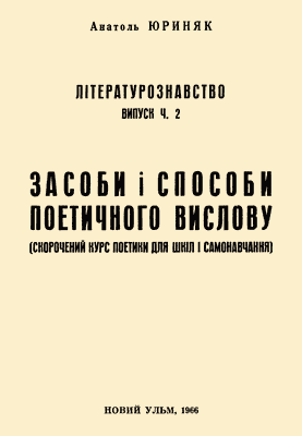 Анатоль Юриняк. Засоби і способи поетичного вислову (Скорочений курс поетики для шкіл і самонавчання). Літературознавство, випуск ч. 2. Новий Ульм — 1966 |